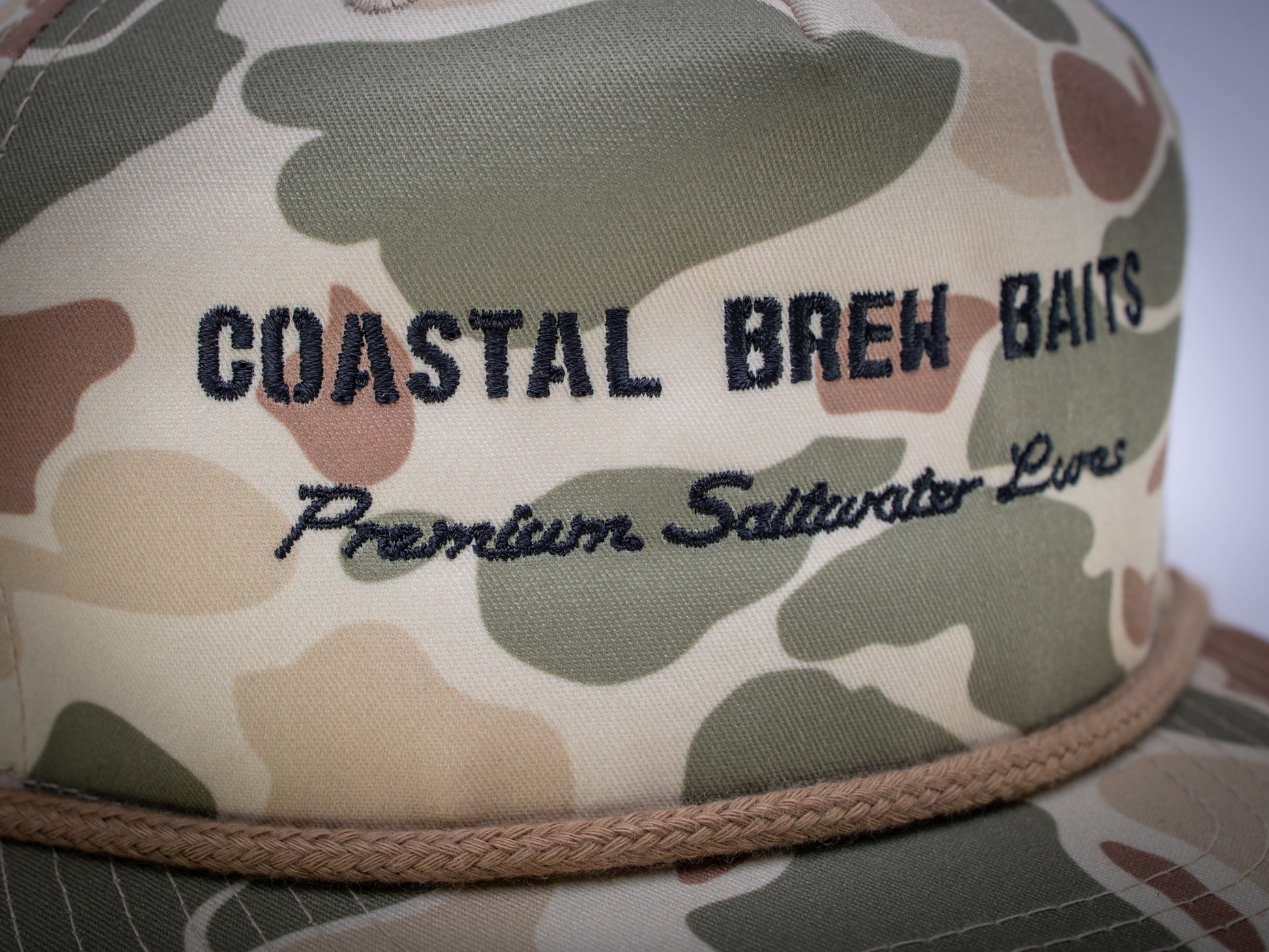 Built on a Richardson 256 camo rope hat and embroidered with our signature coffee sack logo. Intended for a “less is more” look, this hat is clean, simple, and comfortable for long days on the water or at the bar with friends!