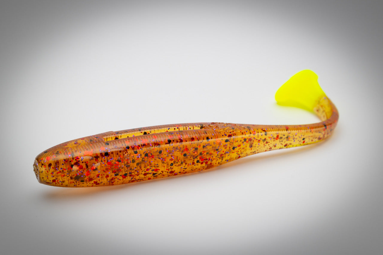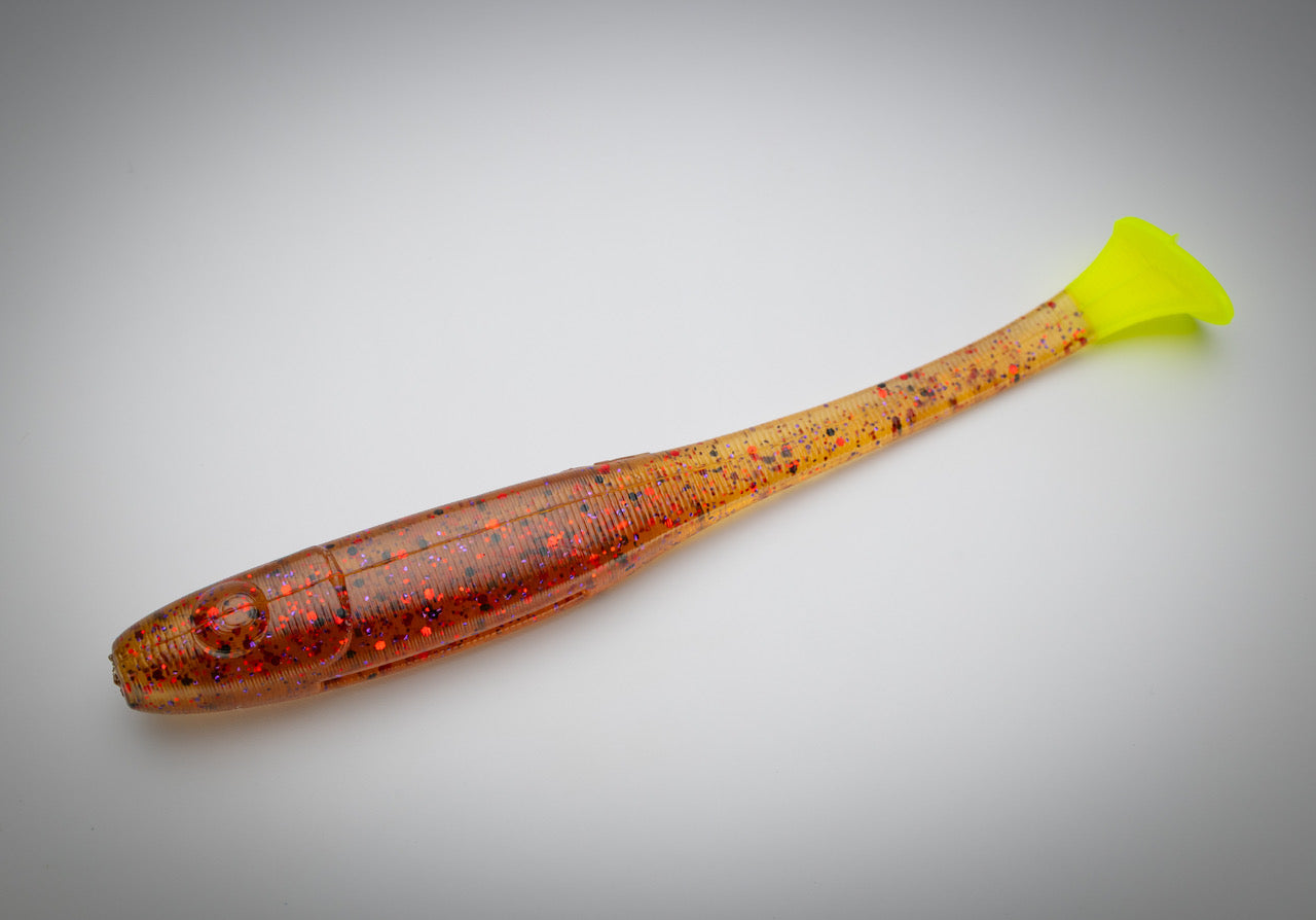 "Watermelon Red", a time tested and proven color for most any species. If you haven't heard of or thrown "Watermelon Red" you'd have to be living under a rock. This color is a classic killer with our very own, yet subtle, Coastal Brew twist to give it a little extra flavor where it matters. "Watermelon Red's" brownish green color is incredibly transparent and natural in almost every sense of the word. This bait mimics a natural shrimp perfectly. Great in almost any condition. Proven trout bait over grass. We have found that on tough bite days, "Watermelon Red" really shines when other won't. Our "Watermelon Red" Deceiver comes equipped with a chartreuse tail to give it extra drawing power in dirty or stained water.